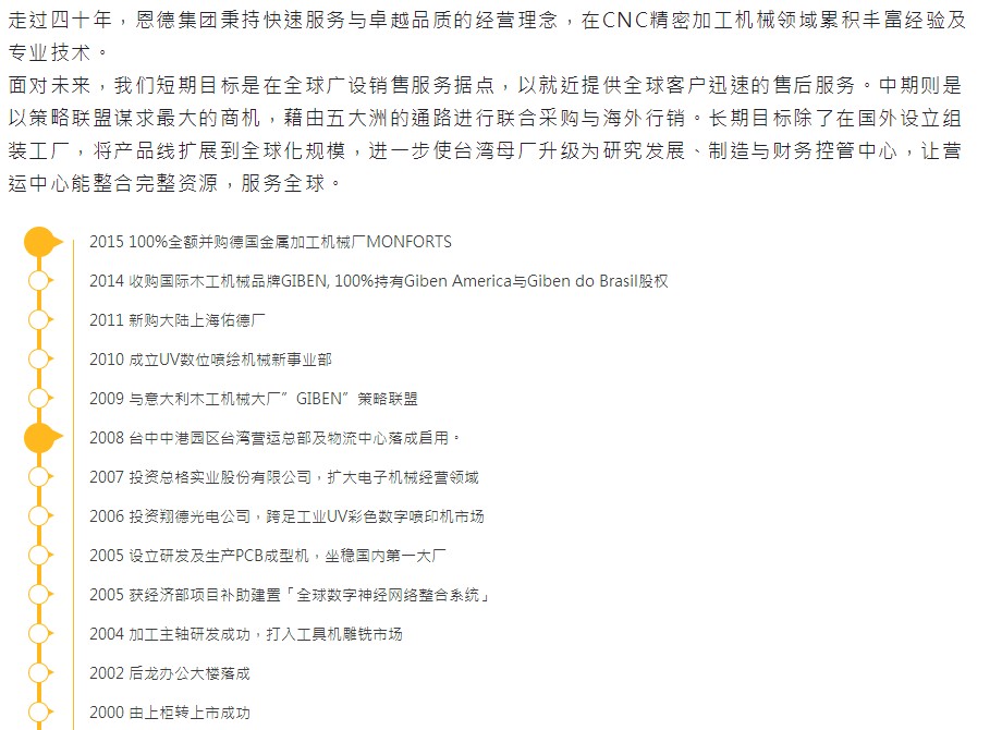 自1972年开始,恩德集团在精密加工机械领域累积了丰富的经验及专业的技术。