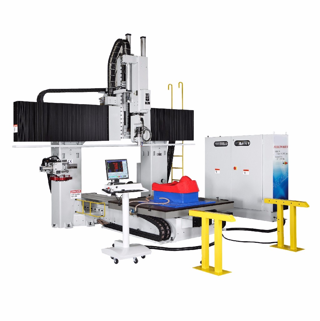 AXXIOM系列是台面移动式的5轴加工机,拥有高加工精度与高性能,拥有高刚性的机身,并结合精密齿轮箱与高精度伺服系统,使得AXXIOM为加工塑料、铝和复合材料的理想选择。 固定横梁和移动工作台面的设计,加上结构刚性高与平稳的加工的台面,使5轴机在加工模式时可以保持一个高速的状态,是专门用来处理高速修边、开槽、钻薄的硬质材料,如热成型塑料等。此机械之切削移动是以工业标准G码控制,并支持市面上一般的CAD/CAM软件及工业用3D模块的软件。其他选配装置包括工件尺寸探测,单、双区功能,并根据要求订制配置。